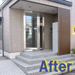 こちらの物件は空室が何部屋か出たので、ワンルームマンションの空室対策としてエントランス外部に宅配ボックスをご提案。宅配ボックスのみだと見栄えが悪いので目隠しも設置して景観も考慮しました。